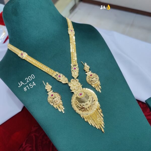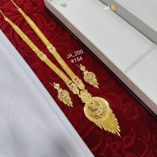 Add a royal touch to your traditional attire with this exquisitely designed Rani Har in gold polish. Inspired by the grandeur of royal heritage, this long necklace features intricate patterns and fine craftsmanship that radiate grace and sophistication. Crafted using premium-quality alloy and finished with a rich gold polish, it gives you the luxurious look of real gold without the heavy cost. Ideal for bridal wear, festive occasions, and traditional ceremonies, this Rani Har enhances every outfit with elegance and majesty. Lightweight yet regal in appearance, it ensures comfort with every wear while leaving a lasting impression.