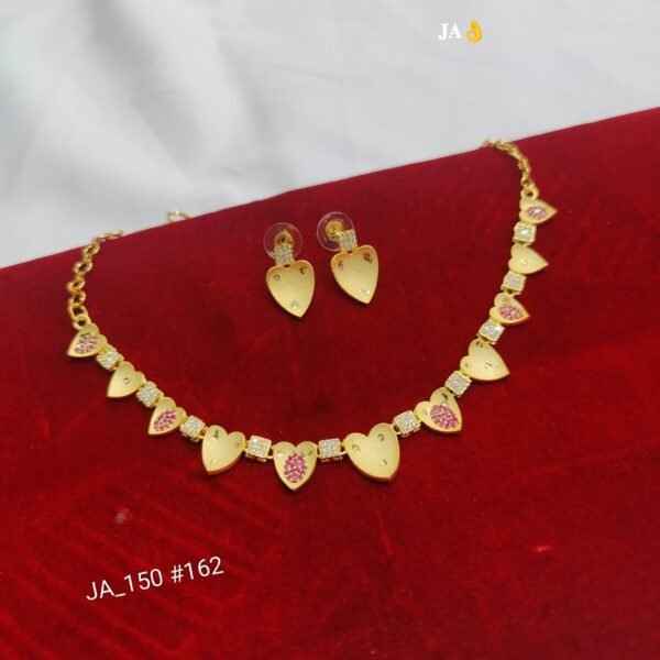 Step into timeless tradition with this beautifully crafted necklace set  . Featuring a stunning matte gold finish, this elegant set is enhanced with fine Cubic Zirconia (CZ) stones and delicate ruby-colored red stone detailing.
