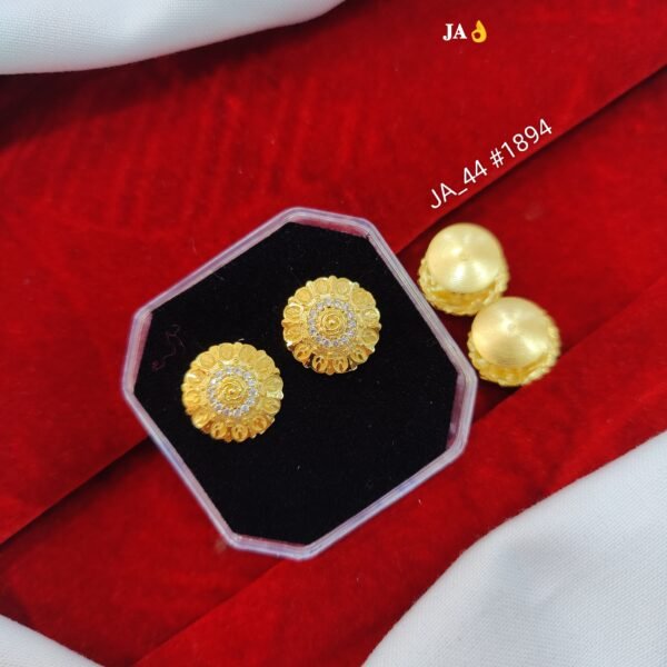 Add a graceful charm to your jewellery collection with these exquisitely designed gold-toned tops. Inspired by traditional floral patterns, these tops feature a detailed petal-like structure with intricate texture, finished with a central arrangement of sparkling white and pink stones.