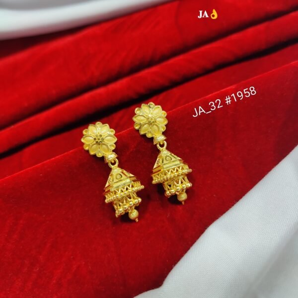 • Design: Traditional bell-shaped jhumka with intricate detailing
