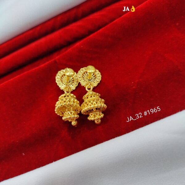 • Design: Traditional bell-shaped jhumka with intricate detailing