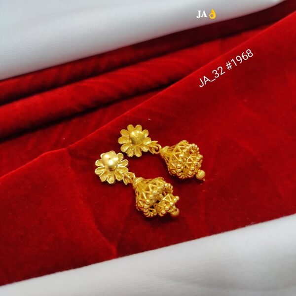 • Design: Traditional bell-shaped jhumka with intricate detailing