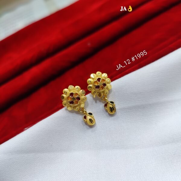 Add a graceful charm to your jewellery collection with these exquisitely designed gold-toned tops. Inspired by traditional floral patterns, these tops feature a detailed petal-like structure with intricate texture, finished with a central arrangement of sparkling white and pink stones.