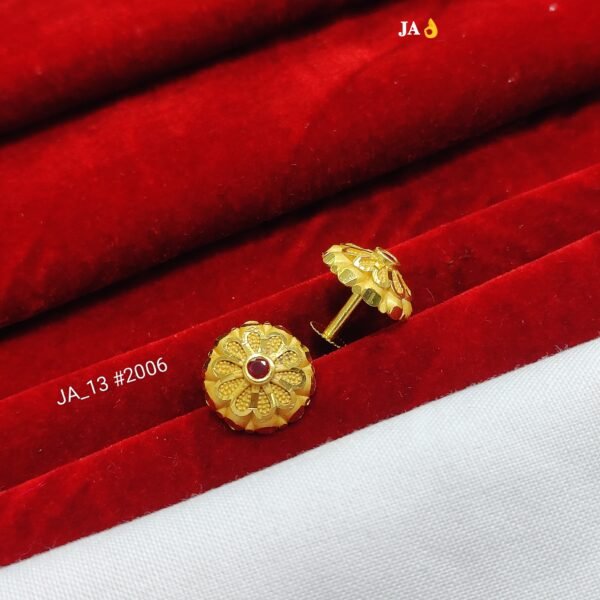Add a graceful charm to your jewellery collection with these exquisitely designed gold-toned tops. Inspired by traditional floral patterns, these tops feature a detailed petal-like structure with intricate texture, finished with a central arrangement of sparkling white and pink stones.