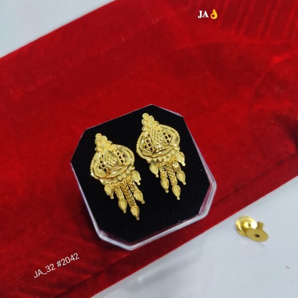 Whether paired with a saree, lehenga, or a chic Indo-western outfit, these earrings bring just the right amount of sparkle without being overpowering. Their compact size ensures all-day comfort, while the rich golden sheen adds a luxurious charm to your look.