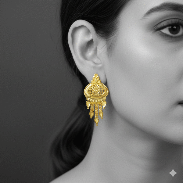 Add a hint of golden glamour to your party look with our Luxe Spark Stud Earrings. Lightweight, elegant, and perfect for festive nights or special occasions.