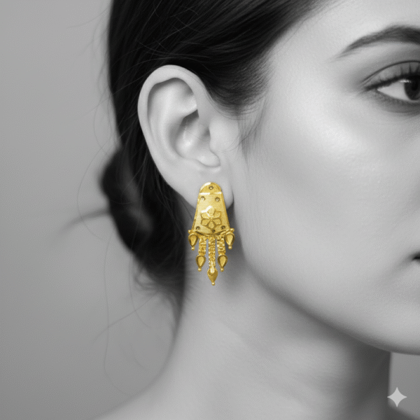 Add a hint of golden glamour to your party look with our Luxe Spark Stud Earrings. Lightweight, elegant, and perfect for festive nights or special occasions.