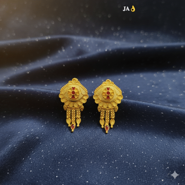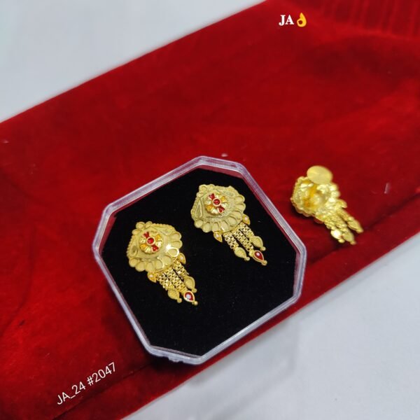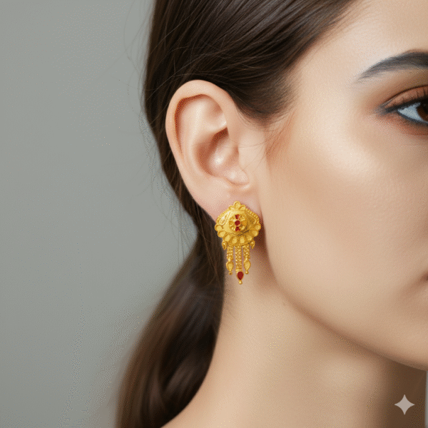 Whether paired with a saree, lehenga, or a chic Indo-western outfit, these earrings bring just the right amount of sparkle without being overpowering. Their compact size ensures all-day comfort, while the rich golden sheen adds a luxurious charm to your look.