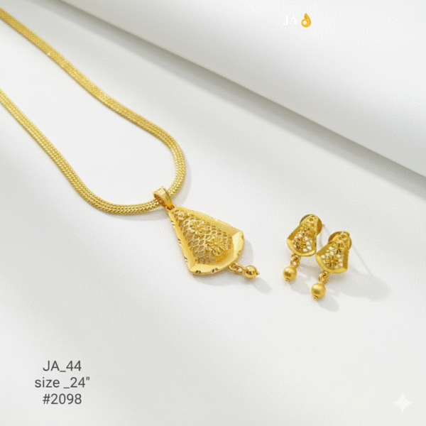 This exquisite Gold-Plated Pendant and Earring Set is the perfect way to add a touch of traditional elegance and modern allure to your everyday or special occasion attire.