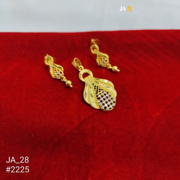 This exquisite jewelry set features a beautifully crafted gold pendant and perfectly matching stud earrings.
