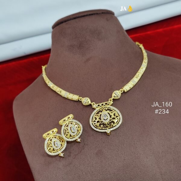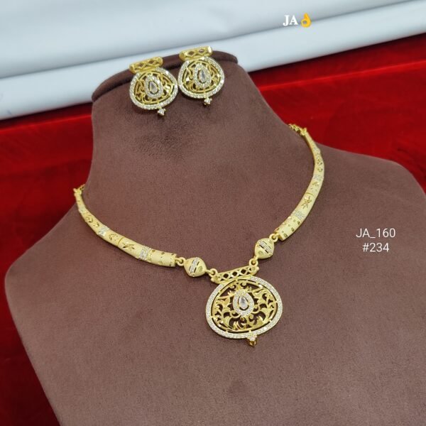 Add a touch of timeless luxury to your collection with our AD Golden Loop Necklace Set, a perfect blend of modern grace and traditional charm.