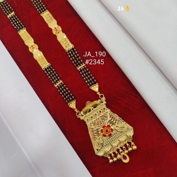 • Perfect Length: This is a long-style (lamba) mangalsutra, ideal for pairing with sarees, lehengas, and other Indian ethnic wear, allowing the ornate pendant to sit gracefully on your attire.