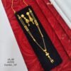 This stunning Mangalsutra Combo Set is a perfect blend of tradition and modern elegance. Crafted with a rich gold polish finish, the mangalsutra features a sleek dual-chain design adorned with finely detailed golden beads and a graceful pendant that enhances its royal appeal.