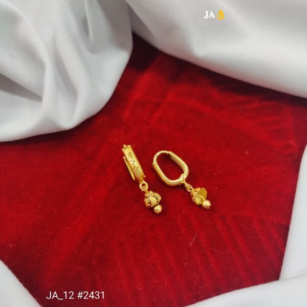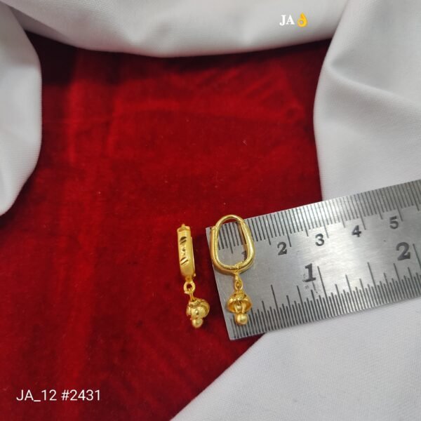 Exquisite Craftsmanship: The design features a beautifully textured “Bali” (hoop) base, leading down to a handcrafted mini-jhumki with a polished gold bead drop.