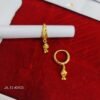 Traditional Jhumki Accent: Suspended from the hoop is a beautifully detailed mini-jhumki with dangling golden beads, adding a graceful sway to your movements.