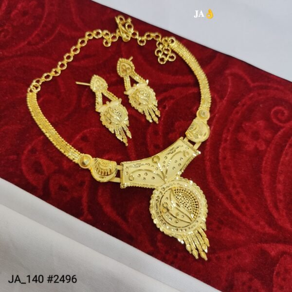 Ideal for weddings, festive celebrations, parties, and special occasions, this necklace set complements sarees, lehengas, and ethnic outfits effortlessly. The high-quality gold polish ensures long-lasting shine, making it a timeless addition to your jewellery wardrobe.