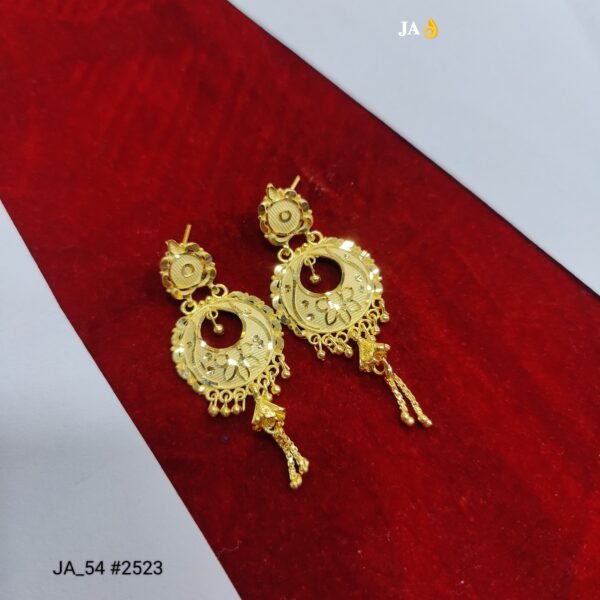 These exquisite Royal Antique Finish Gold Drop Earrings are a perfect blend of traditional artistry and timeless elegance. Designed in a classic circular pattern, the earrings showcase fine floral engravings that reflect skilled craftsmanship and rich cultural heritage.