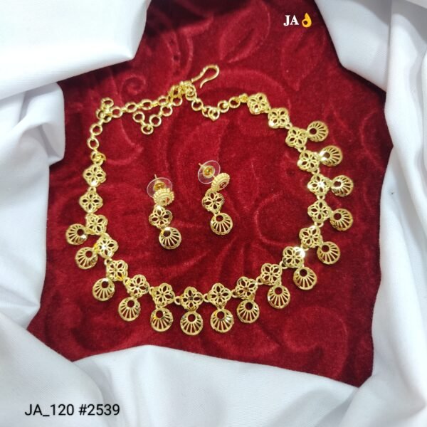 The necklace showcases finely detailed craftsmanship that enhances its rich golden glow, making it ideal for festive occasions, weddings, parties, and special celebrations. The lightweight structure ensures comfortable wear, while the adjustable clasp provides a perfect fit for every neckline.