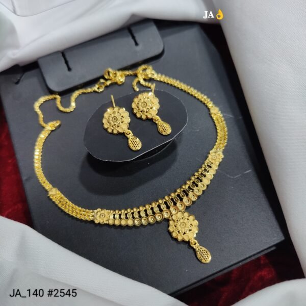 Enhance your traditional style with this Elegant Gold Finish Necklace Set, thoughtfully designed to bring grace, charm, and sophistication to your jewellery collection. Crafted with fine detailing and a classic traditional pattern, this necklace set reflects rich craftsmanship and luxurious appeal.