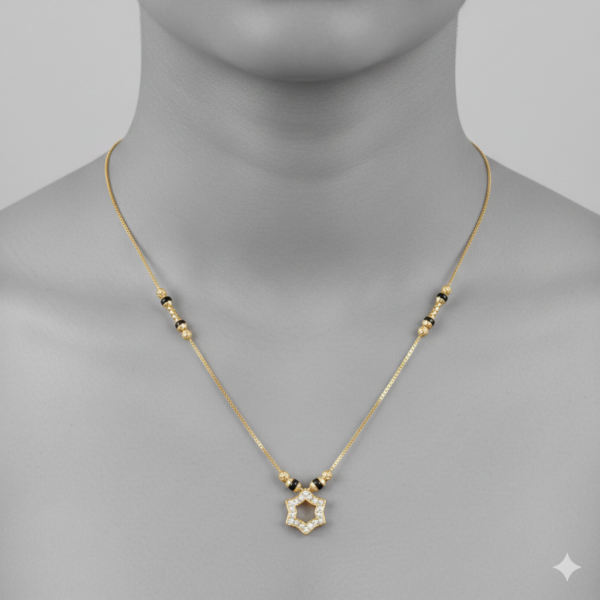 This Elegant Star Design Mangalsutra is thoughtfully designed for women who appreciate minimal elegance with a modern feel.