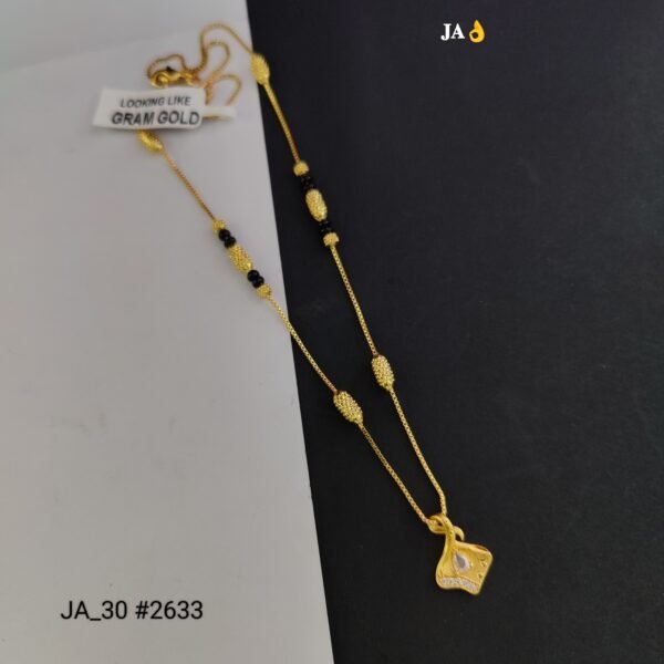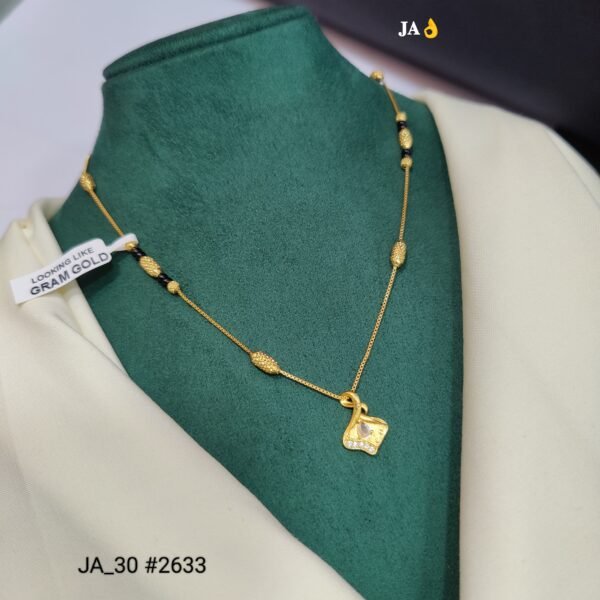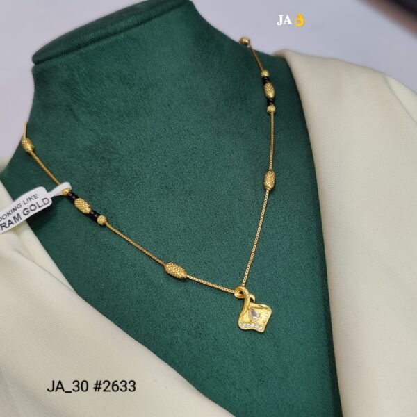 A graceful gold-look mangalsutra featuring finely crafted beads and a stylish designer pendant. Perfect for daily wear with a premium finish that looks just like real gold.