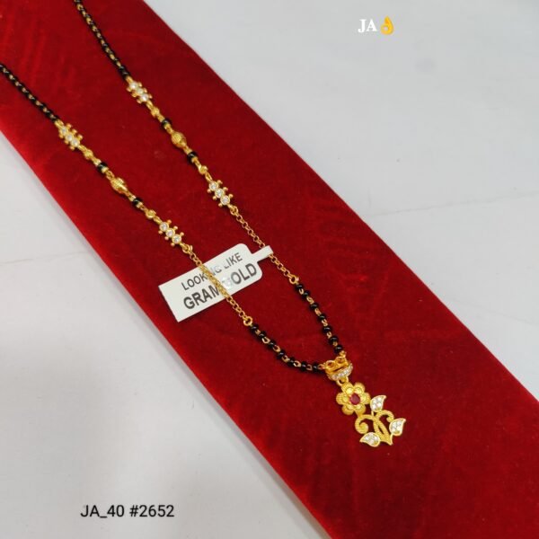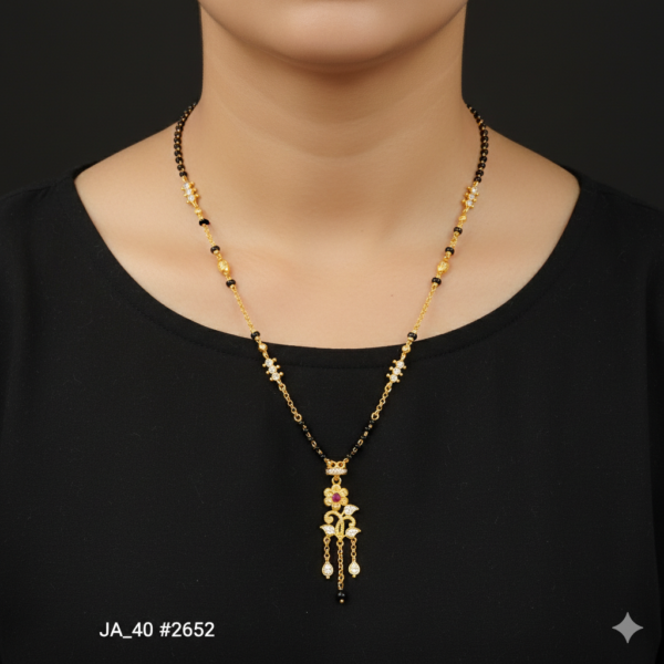 The necklace is crafted with classic black beads and a durable gold-finish chain, offering the perfect balance of tradition and sophistication. Lightweight and comfortable, it is ideal for daily wear, while its elegant design makes it equally suitable for festive occasions, weddings, and family functions.