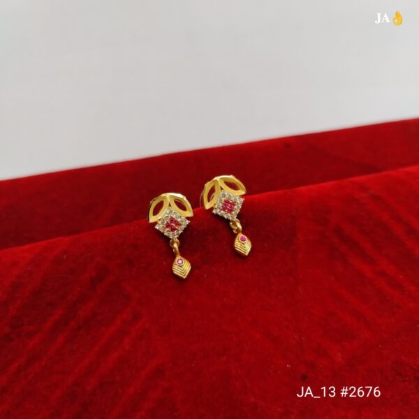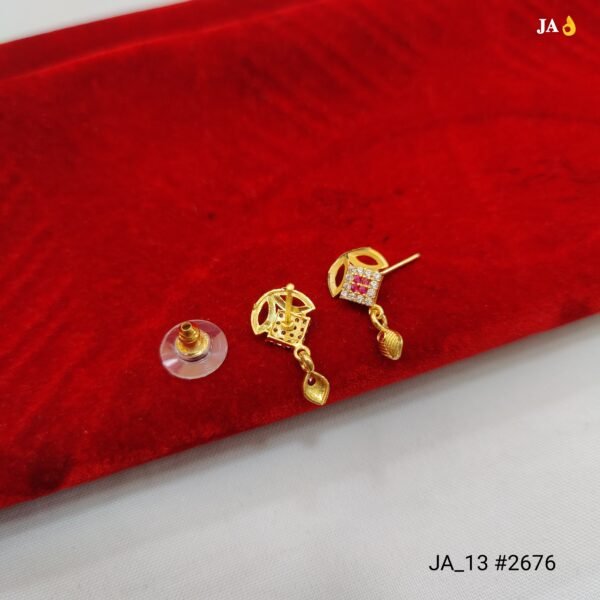 Add a touch of royalty to your jewellery collection with these beautifully crafted Royal Pink Leaf Drop Gold Earrings. Designed with an elegant leaf-inspired top, these earrings symbolize grace and sophistication.