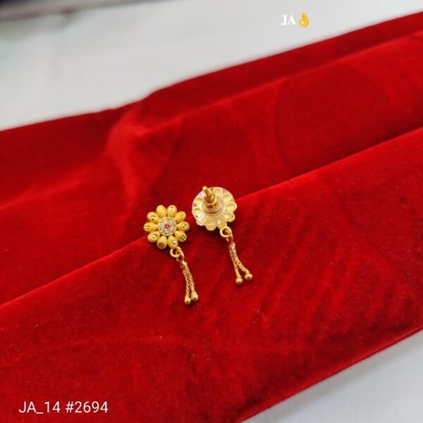Add timeless charm to your jewelry collection with the beautifully crafted Golden Blossom Charm Drop Earrings. Designed in a refined floral pattern, these earrings showcase intricately detailed petals in a rich gold-tone finish, creating a graceful and feminine appeal.