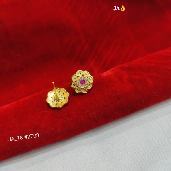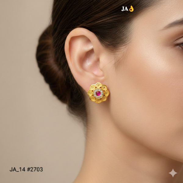 The outer layer showcases finely crafted golden petal detailing, giving the studs a rich and sophisticated appearance. Despite their compact size, the intricate design makes them eye-catching and luxurious.