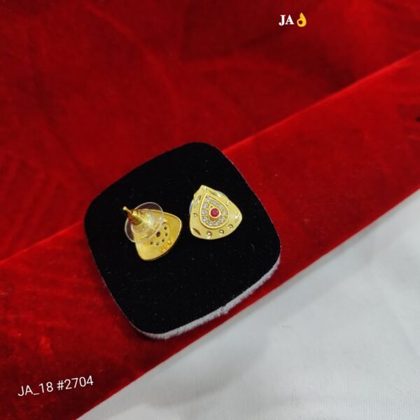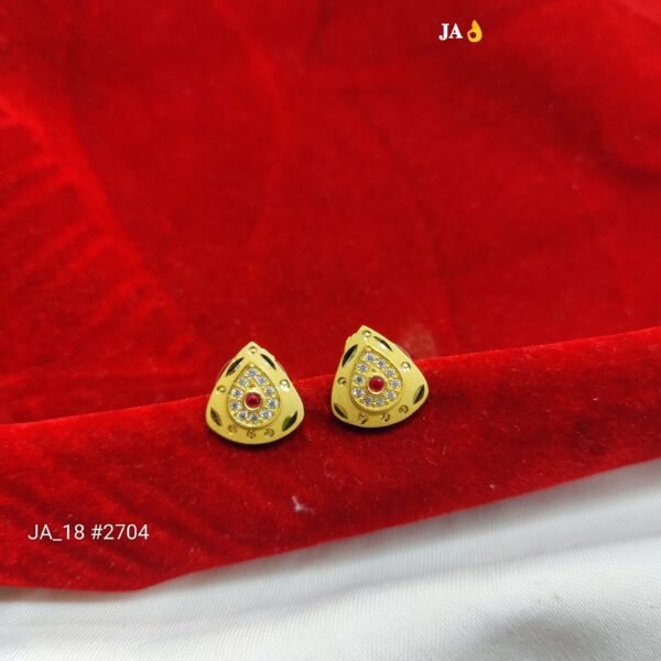Gracefully designed gold stud earrings with a striking scarlet center stone and dazzling crystal accents — crafted to add a bold yet elegant statement to your look.