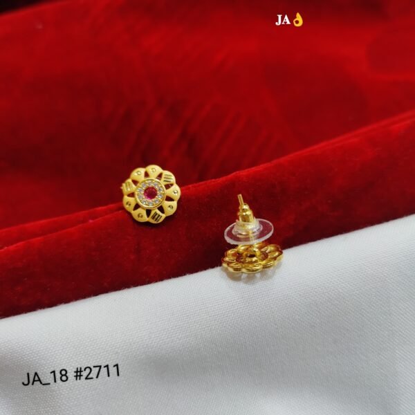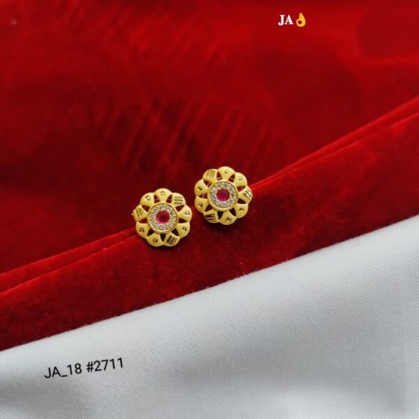 The vibrant red stone symbolizes love and power, while the golden finish adds a touch of timeless richness. Whether paired with a saree, lehenga, or kurti, these studs effortlessly complete your look with elegance and confidence.