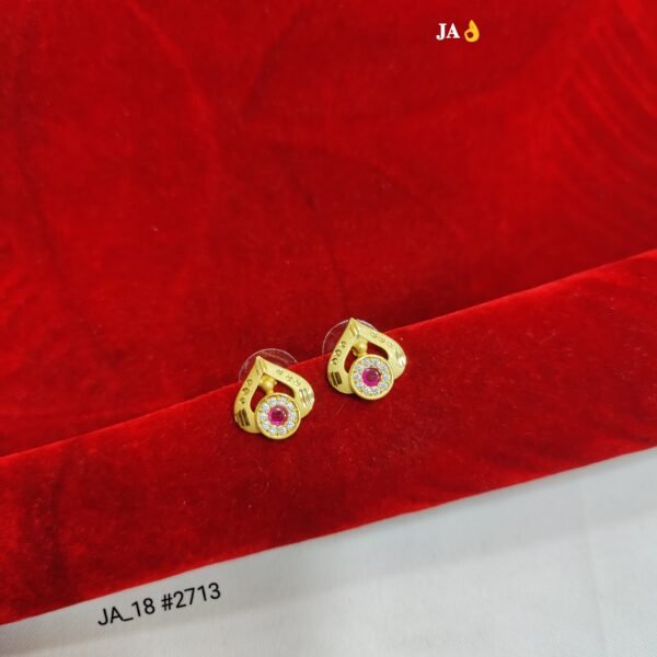 Discover the perfect harmony of tradition and trend. These earrings are meticulously crafted with a central vibrant Ruby-Red gemstone, surrounded by a halo of shimmering White Cubic Zirconia. The intricate gold-plated teardrop frame adds a layer of sophistication that catches the light from every angle.