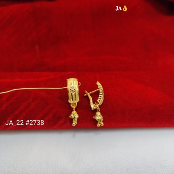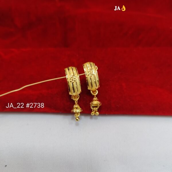 The soft gold finish enhances the rich look, while the hanging mini jhumki drops add a graceful movement that catches attention effortlessly. Lightweight and comfortable, this design is ideal for daily wear, office styling, small functions, and festive occasions.