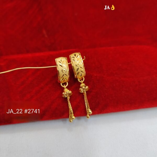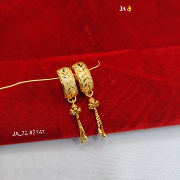 Enhance your jewellery collection with these stunning golden leaf cutwork hoop earrings. Designed with intricate leaf patterns carved beautifully on the hoop surface, these earrings reflect grace and sophistication in every detail.