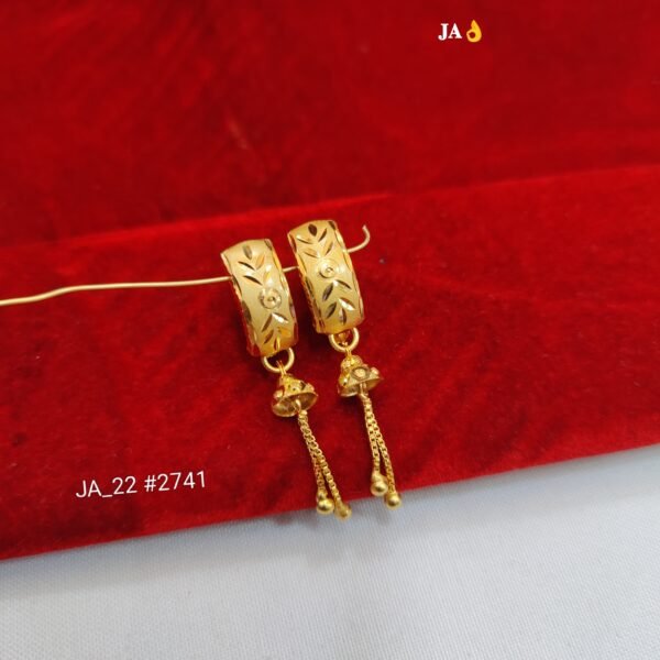 The lower part features a delicate dome-shaped element connected with fine chain tassels that add graceful movement and shine with every step you take. The smooth golden finish gives it a premium look, making it suitable for both festive occasions and daily elegant wear.