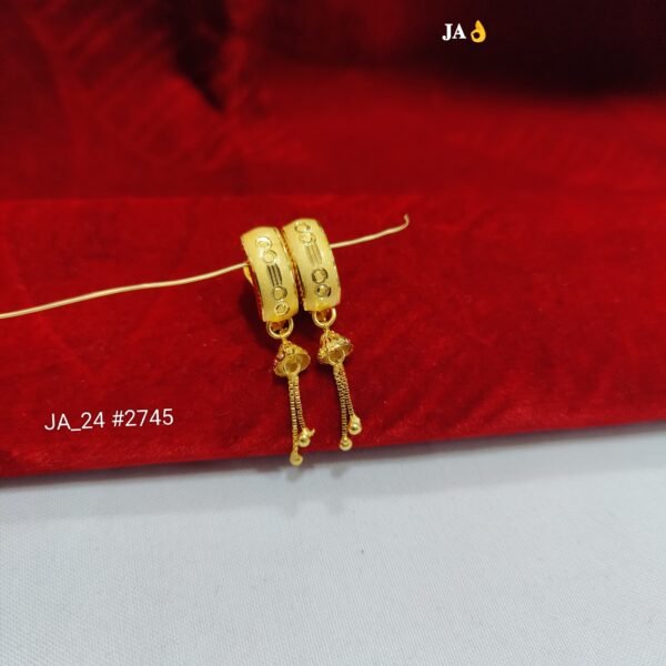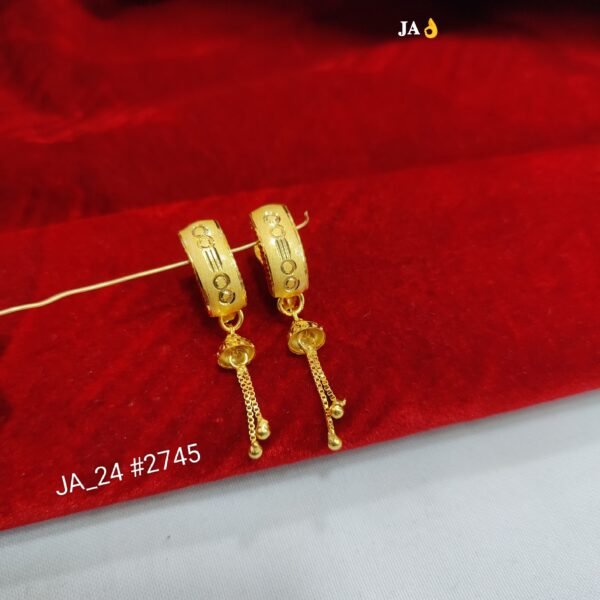 The delicate hanging chain drops with polished golden beads create soft movement and add a luxurious finishing touch. The balanced combination of minimal hoop styling and elegant drop elements makes them suitable for both traditional and modern outfits.