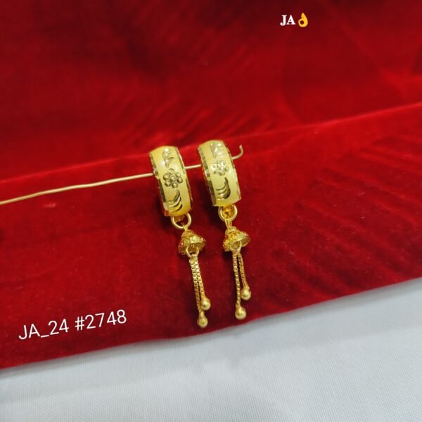 Add a touch of refined elegance to your jewelry collection with these stunning Floral Charm Drop Hoops. Designed with intricate floral engraving on a bold gold-tone hoop, these earrings beautifully capture traditional artistry with a modern finish.