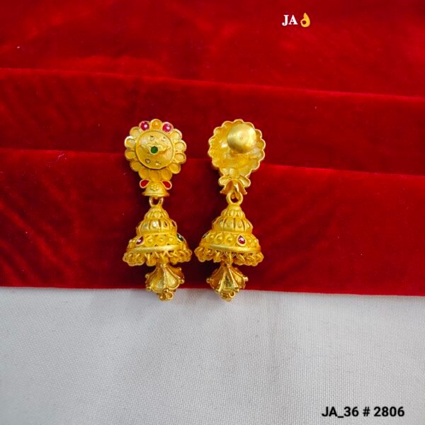 Unique Layered Dome: The Jhumki features a “step” or layered design that adds significant volume and a luxurious 3D effect, making it look like a high-end designer piece.