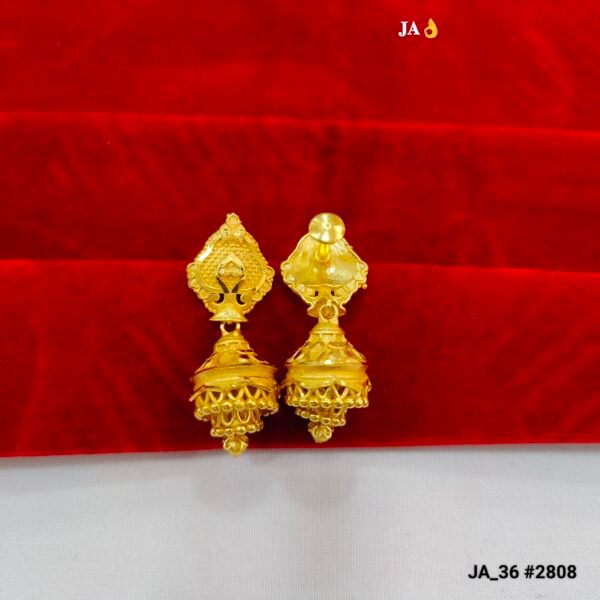 Double-Layered Tapered Dome: The bell (Jhumki) is designed with two distinct layers of craftsmanship, ending in a cluster of high-shine golden beads for a full, voluminous look.