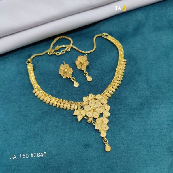 Celebrate timeless beauty with the Royal Bloom Floral Gold Necklace Set, a masterpiece inspired by the elegance of blossoming flowers. Designed for women who adore traditional charm with a graceful statement touch, this set radiates sophistication from every angle.