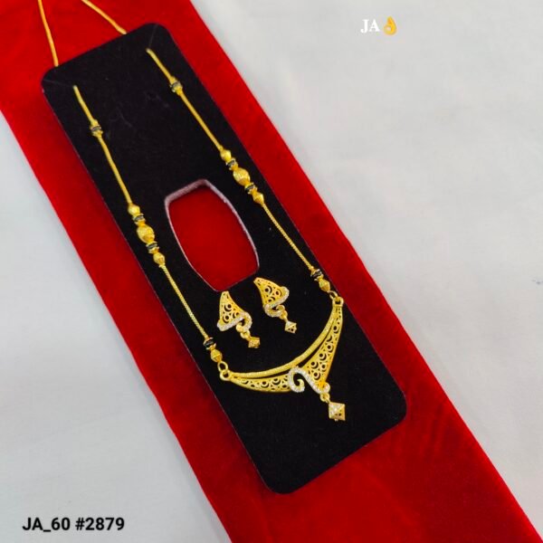 Made with high quality gold plating, this jewellery set offers long-lasting shine and durability. Its lightweight design ensures comfortable wear throughout the day. Whether you wear it daily or on special occasions like weddings, festivals, or parties, this mangalsutra set will always make you look elegant and stylish.