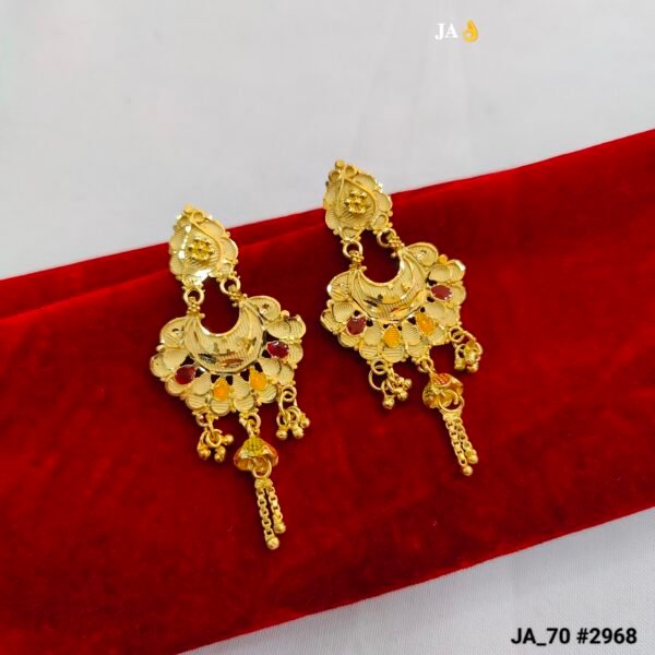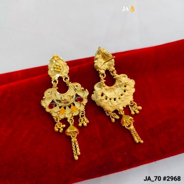 Multi-Color Meenakari Work: Accented with vibrant red, orange, and yellow enamel dots, these earrings offer a colorful contrast that complements a wide range of ethnic outfits.
