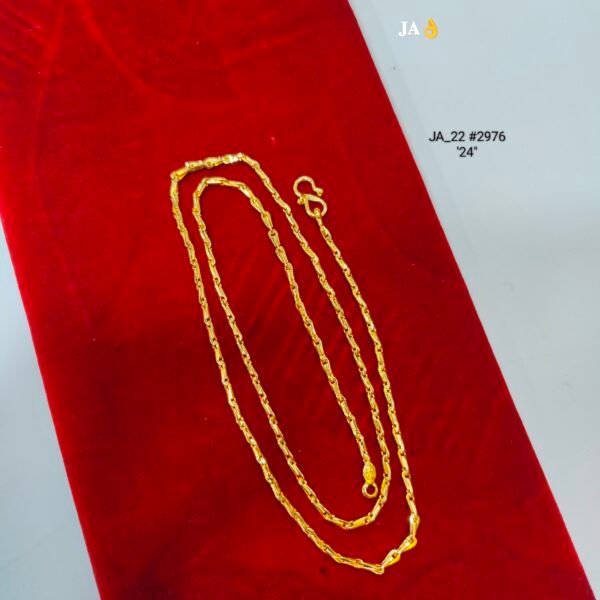 This Bar Link Chain (often called a Bamboo or Cylinder chain) is a favorite for those who prefer a clean, streamlined look. Instead of traditional round links, this chain uses polished bars that create a smooth, continuous line of gold, giving you a sophisticated edge.