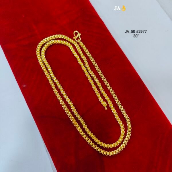 This 30-inch Box Link Chain is crafted for those who prefer a longer, more prominent accessory. The links are designed with a unique micro-texture that gives the chain a “glitter” effect, resembling the craftsmanship of expensive handmade gold jewelry.