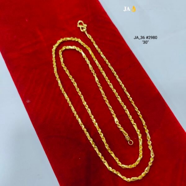 Make a grand statement with this 30-inch Gold-Plated Bar Link Chain. Combining modern minimalist design with a traditional royal length, this “Bamboo style” chain features elongated cylindrical links and a high-mirror polish. It is the perfect accessory for those who want a clean, sophisticated, yet bold look for special occasions.