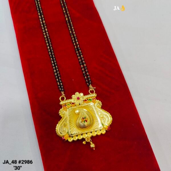 Add a touch of royal heritage to your jewellery collection with this Premium Designer Mangalsutra (JA_48 #2986). This piece combines iconic Indian symbols with modern craftsmanship to create a look that is both timeless and grand.