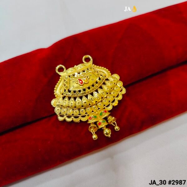 A masterpiece of traditional craftsmanship, our Premium Arched Gold-Plated Mangalsutra Pendant (Code: JA_30 #2987) is designed for those who appreciate grandeur. This “Chand” style pendant combines classic Indian motifs with a rich, multi-dimensional texture.