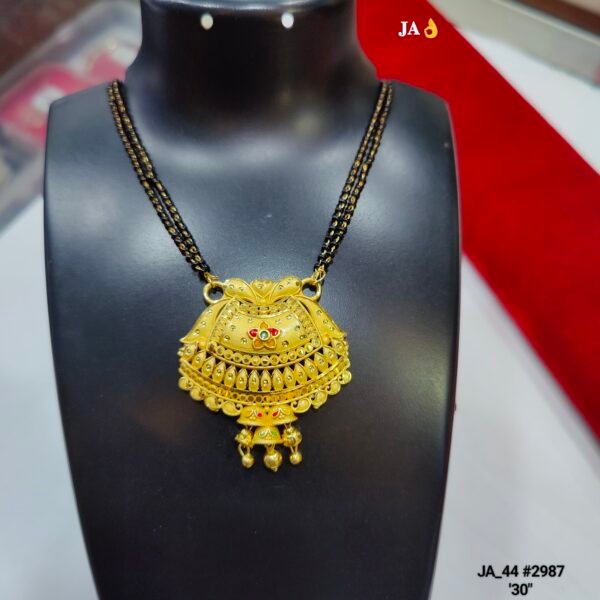 Celebrate your special moments with this Premium Designer Mangalsutra (JA_48 #2987). Meticulously crafted to mirror the grandeur of heritage gold jewellery, this piece is a perfect blend of artistic detail and classic style.