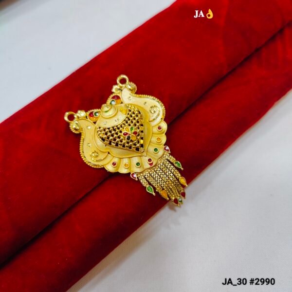 A masterpiece of traditional craftsmanship, our Premium Heart Jali Gold-Plated Mangalsutra Pendant (Code: JA_30 #2990) is designed for those who love unique and symbolic silhouettes. This heart-shaped “Peti” style pendant blends classic mesh work with a grand, multi-dimensional texture.