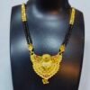 Enhance your traditional style with this beautifully designed gold plated long mangalsutra that perfectly represents love and tradition. Crafted with multiple strands of classic black beads and highlighted with golden designer beads, this mangalsutra offers a rich and sophisticated appearance.